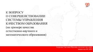 К ВОПРОСУ О СОВЕРШЕНСТВОВАНИИ СИСТЕМЫ УПРАВЛЕНИЯ КАЧЕСТВОМ ОБРАЗОВАНИЯ
