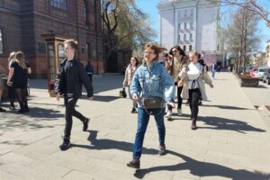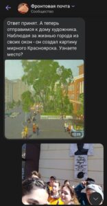 Вчера подвели итоги патриотической акции «Красноярск. Моя семья в «Летописи Победы»». Школьным командам предложили пройти исторический квест и узнать больше о жизни художников-фронтовиков. 7 команд, представляющих разные районы города, встретились в центре на пересечении улиц Обороны и Красной Армии. Ребятам предстояло ответить на вопросы о биографии и особенностях живописи известных красноярских художников Бориса Ряузова, Андрея Поздеева, Евгения Абалакова, Валентина Войно-Ясенецкого. Задания команды выполняли при помощи смартфонов, отвечая на вопросы и делая селфи в знаковых местах города, которые связаны с художниками. Менее чем за час ребята справились со всеми заданиями.