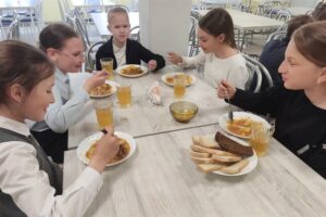 Ежедневно мы готовим более 700 обедов и завтраков. Все блюда готовятся строго по технологическим картам. Мы стараемся ответственно делать свою работу и готовить вкусно, чтобы детям нравилось посещать столовую, чтобы после обедов и завтраков оставались пустые тарелки, а ребята были довольны. В нашей школе действуют два меню – цикличное и с линии раздачи, то есть у ребят всегда есть выбор. К примеру, если дети не хотят макароны с котлетой, то всегда можно выбрать запеченную картошку со шницелем», – отметил заведующий производством столовой школы №145 Кирилл Медведев.