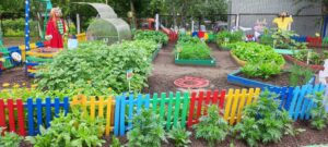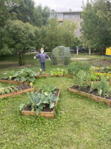 На детских огородах можно увидеть тыквы, подсолнухи, овес, пшеницу, сельдерей, руколу и базилик. Разбавляют зеленые грядки разноцветные клумбы с бархатцами, петуниями и лилиями. Интересно на таких веселых фермах как воспитанникам ясельных групп, так и ребятам постарше.