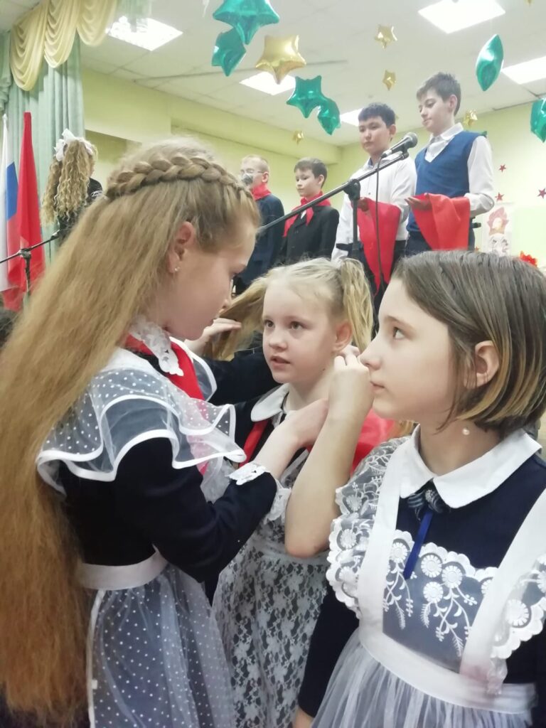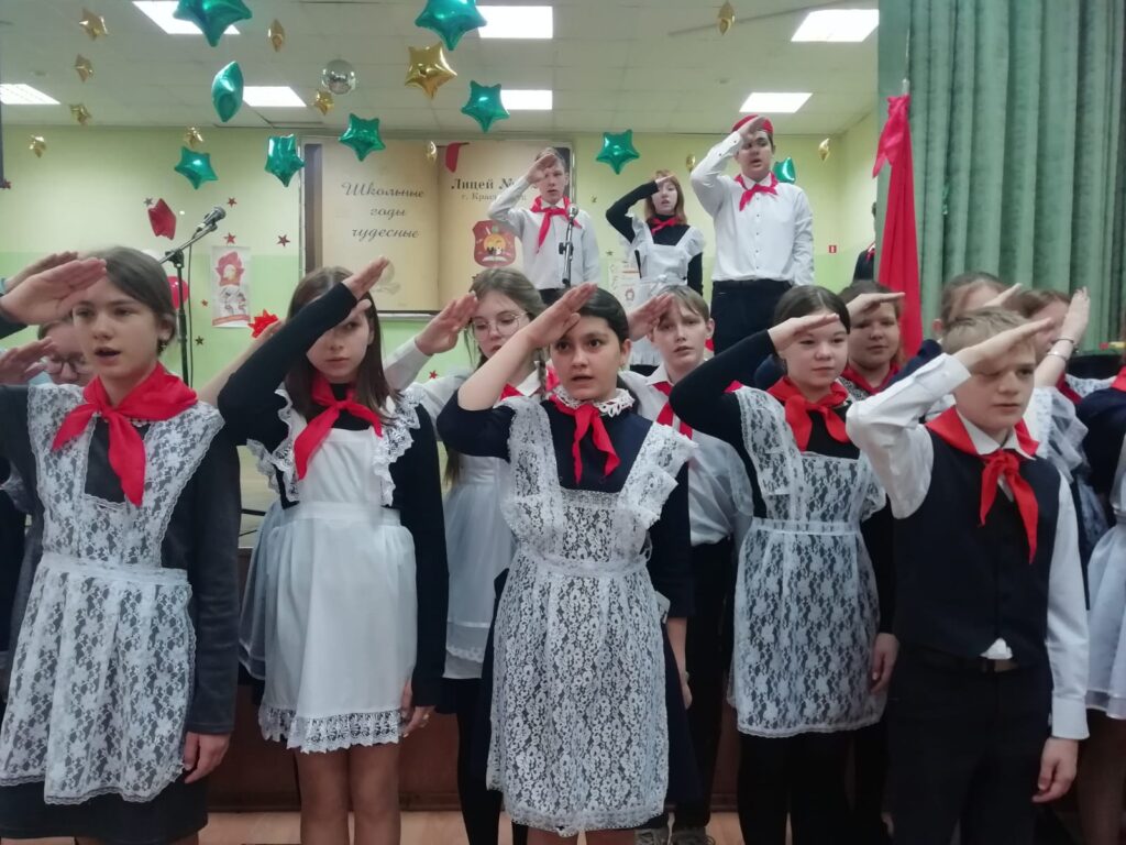 Посвящение в пионеры началось с торжественного выноса знамени дружины. Ребята произнесли клятву и отдали салют словами «Всегда готов». Лицей №12 – единственное образовательное учреждение города, где до сих пор поддерживают традиции пионерии, а школьники гордо ходят в форме советских времен.