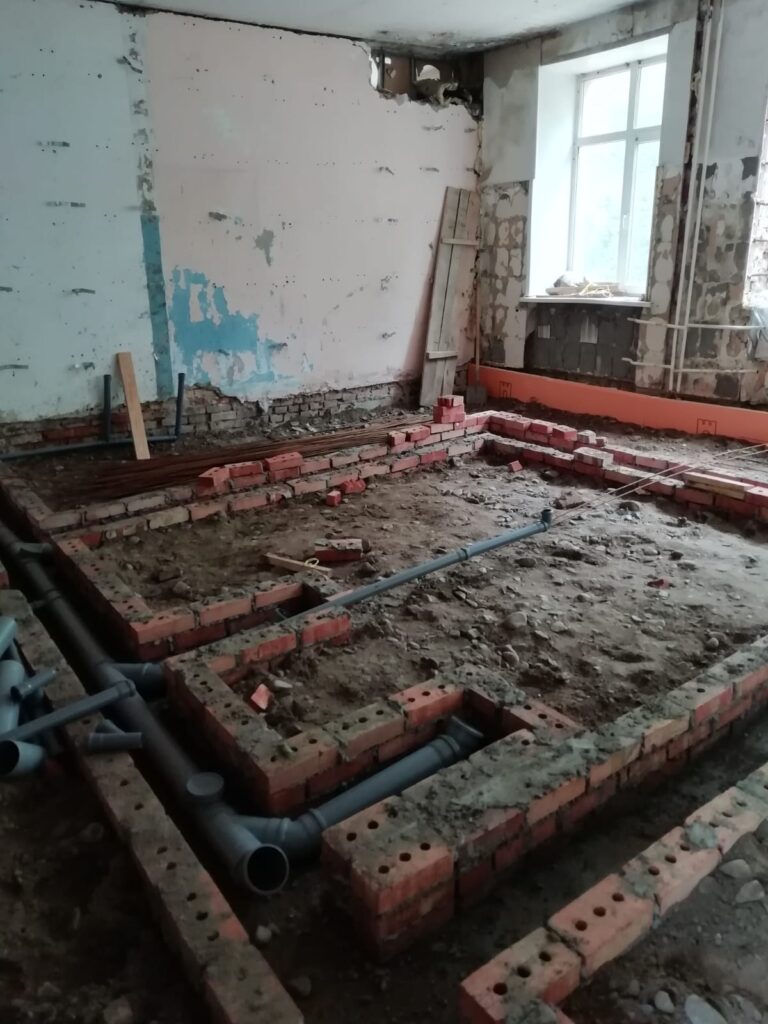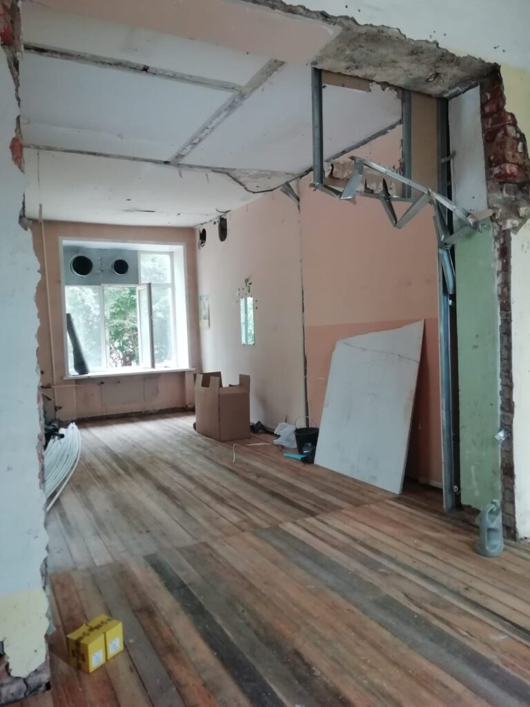 «Основные грязные работы уже сделаны. Мы демонтировали перегородку, сняли старую штукатурку и пол. Полностью заменили инженерные сети, собрали новую систему вентиляции. Сейчас штукатурим. Работы идут по графику, закончим в срок», — рассказывает представитель подрядной организации Идрис Холов.