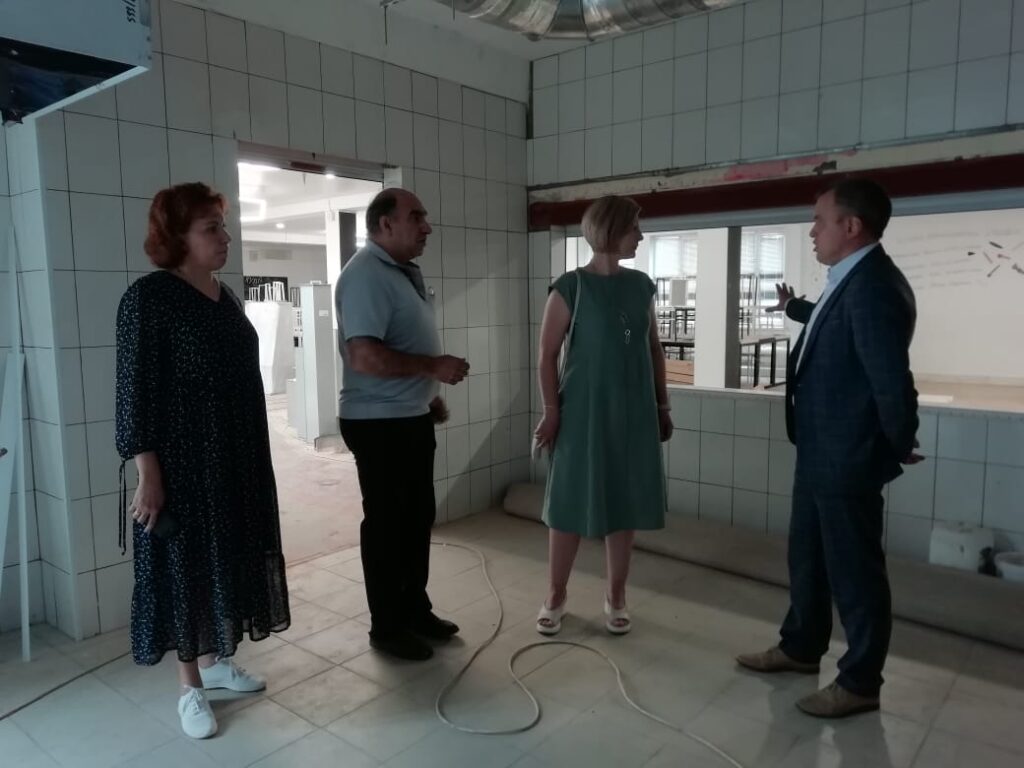 Заместитель руководителя главного управления образования с рабочим визитом посетил школу №144 микрорайона Солнечный, где сейчас идёт капитальный ремонт пищеблока. Максим Батуров вместе с директором учебного заведения и председателем общественного совета микрорайона оценил ход ремонтных работ.