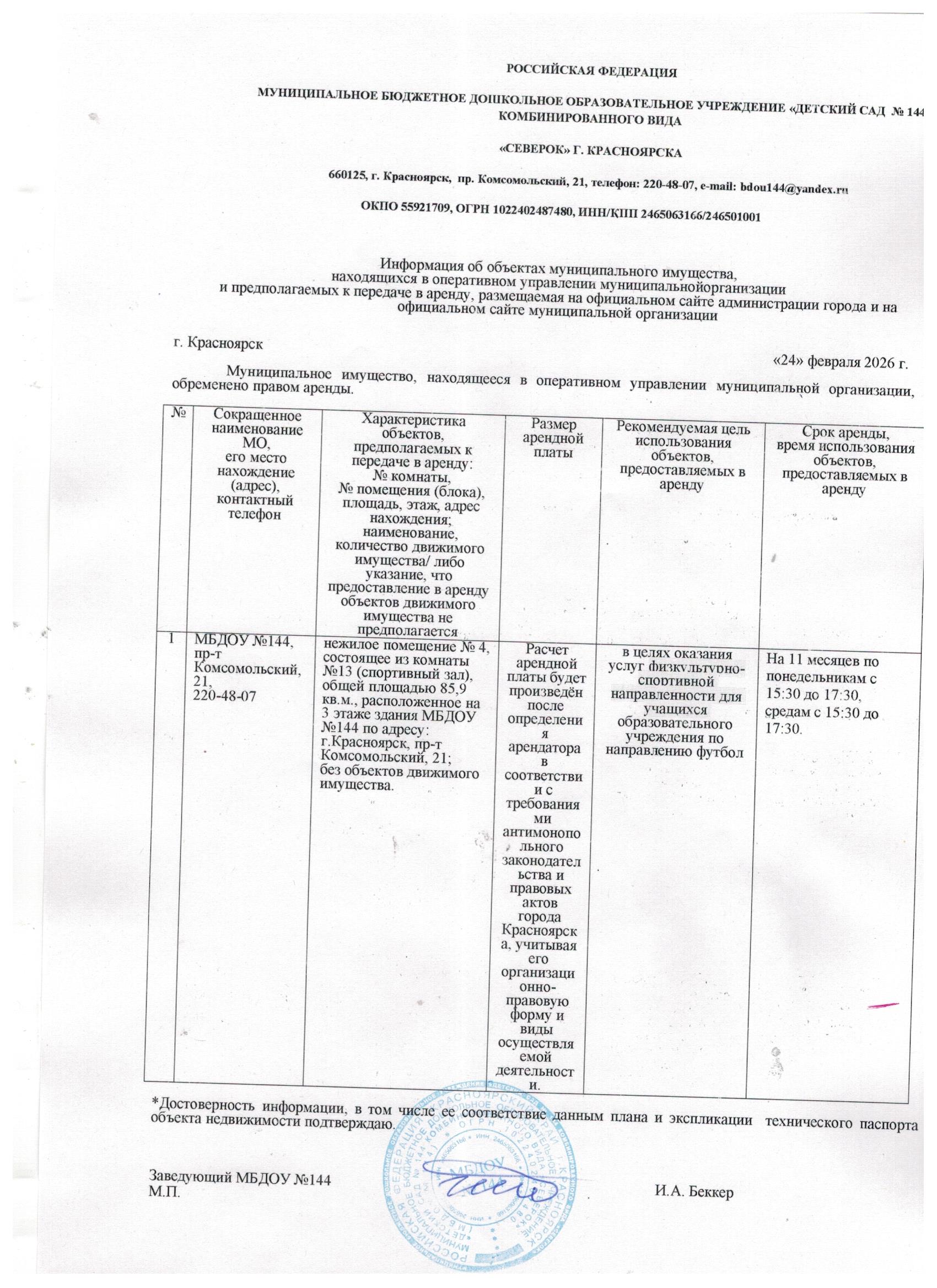 | Аренда МАДОУ № 24 |